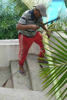 Admirez le travail ! Et tout cela à la sabre à canne (canne à sucre bien sûr) et en tongs ou pieds nus ... et sous notre regard expert !