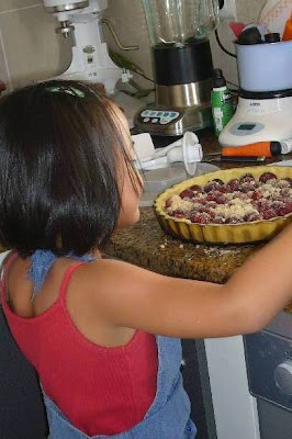 Branle bas de combat des Maîtres Queues dans la cuisine ce matin !Après avoir fait deux litres de Rhum arrangé aux goyaviers, Faustine et Jean-Sébastien ont confectionné une fabuleuse tarte (toujours aux goyaviers) pour le goûter !